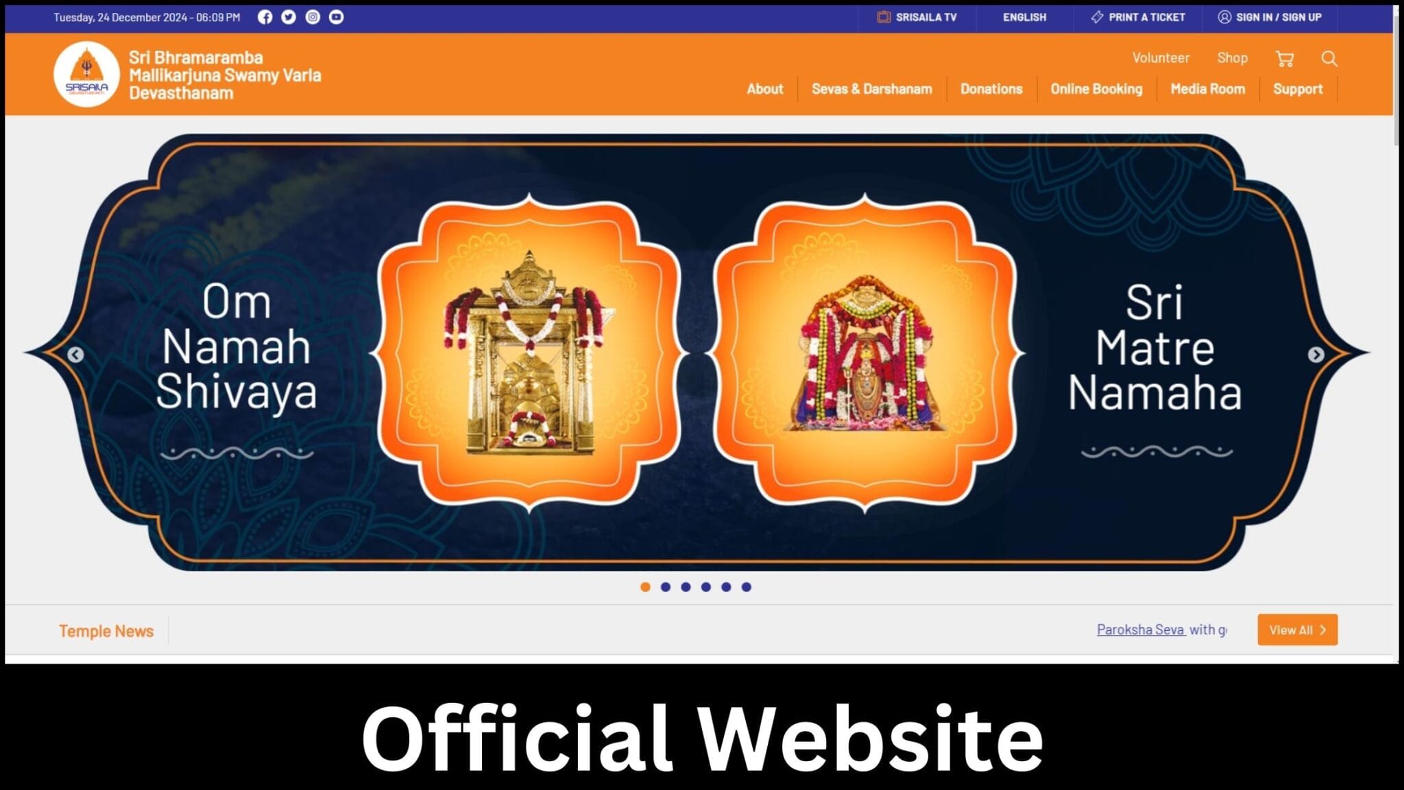 1. Visit the Srisailam Temple’s Official Website.